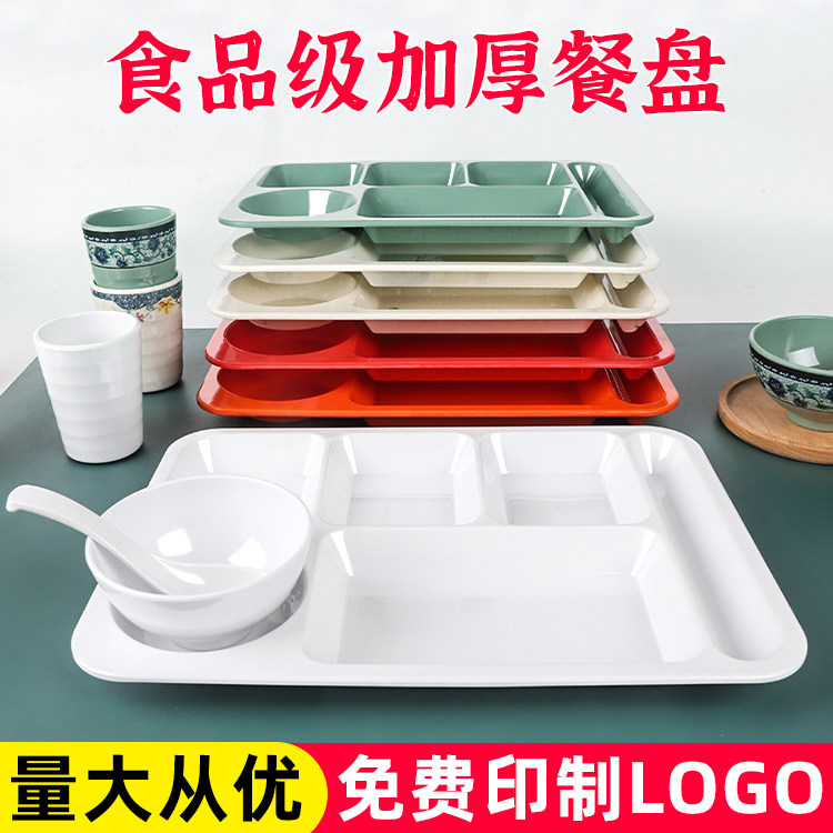 秋草密胺分格盘塑料两格盘子三格餐盘食