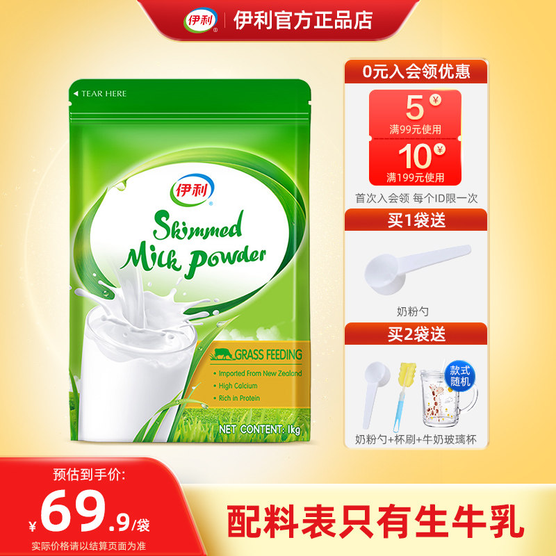 伊利新西兰进口脱脂奶粉/全脂奶粉1kg高钙...