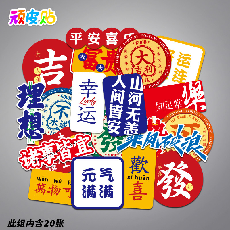 20张简约ins趣味文字贴纸好运连连富贵旅...