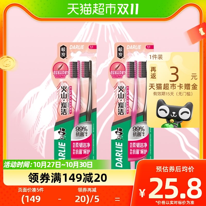 DARLIE好来(原黑人)牙刷火山炭抑菌99%4支软...