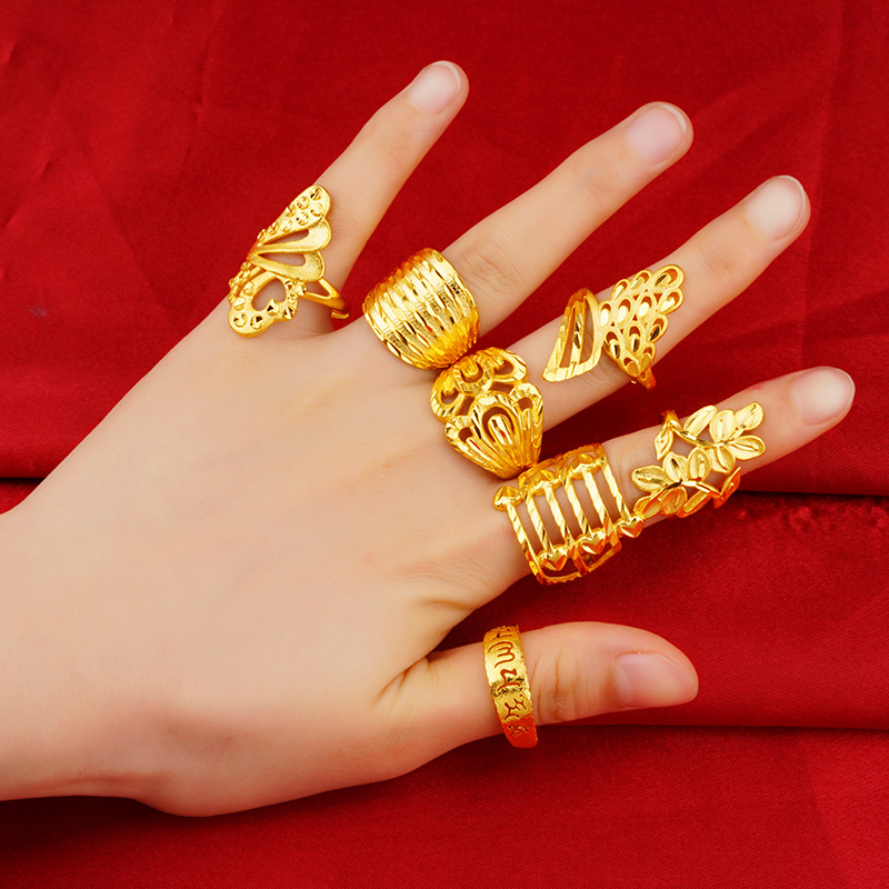 越南沙金情侣戒指 欧币假黄金男女开口戒指 镀金不掉色结婚对戒