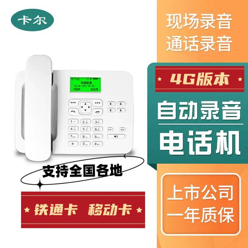 卡尔4G全网通老年人家用报警固定电话机插手机移动卡铁通无线座机