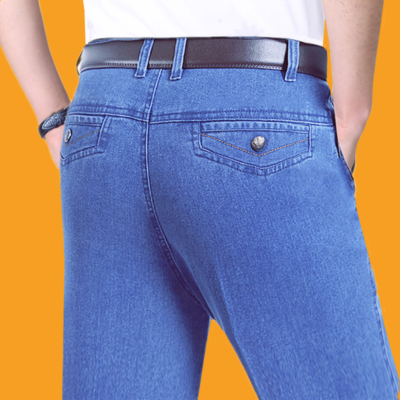 裤子男直筒宽松牛仔裤中年休闲裤子薄款大码宽腿裤加肥加大夏季裤