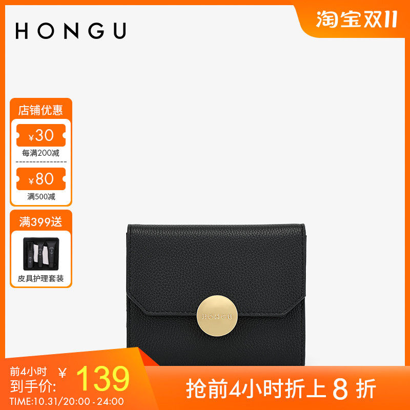 红谷牛皮钱包女短款折叠迷你薄款钱夹三折皮夹时尚撞色零钱包小包