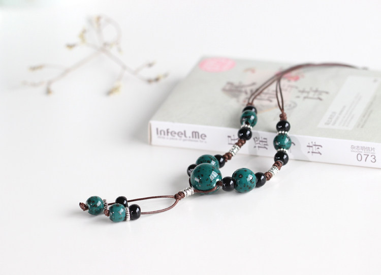 醉梦爱心陶瓷串珠项链女新中式复古编织绳颈链国风禅意汉服锁骨链