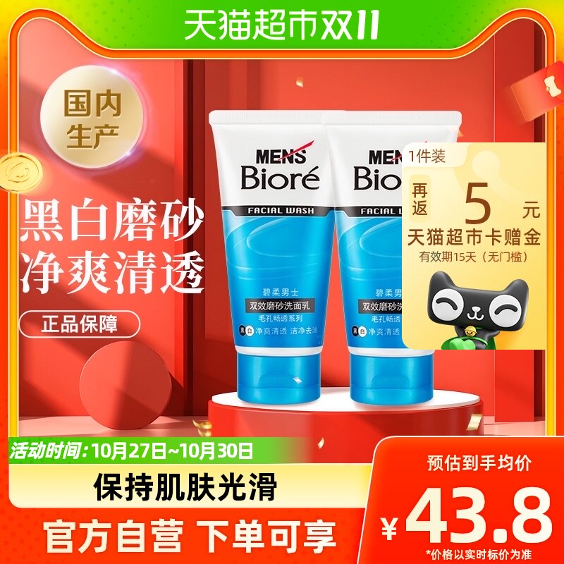 【双11提前加购】Biore/花王碧柔男士双效磨砂洗面乳*2清洁黑头