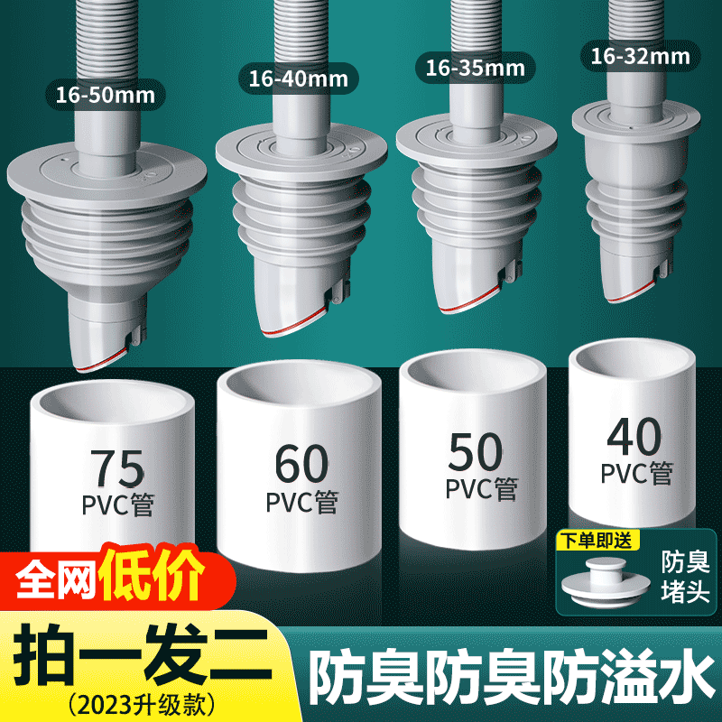 下水管道防返臭神器厨房脸盆洗衣机硅胶密封圈塞5075排水管堵口器