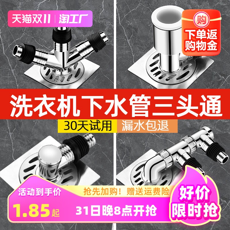 洗衣机排水管防臭三通下水管地漏接头pvc管y型分叉三头通密封连接