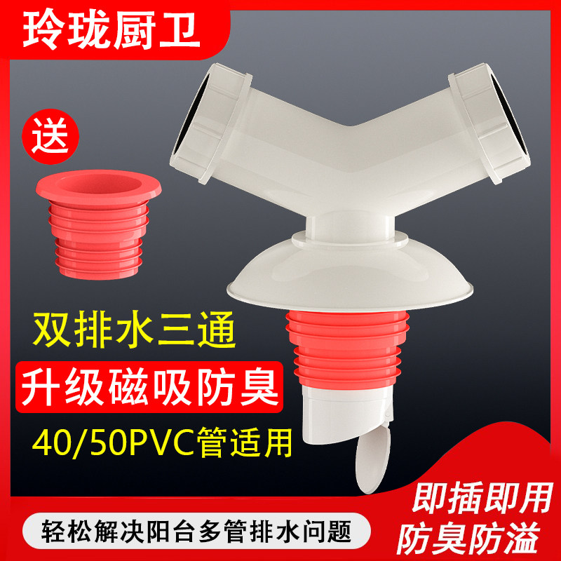 洗衣机下水管道地漏专用接头排水管防臭防溢水三通两用二合一盖子