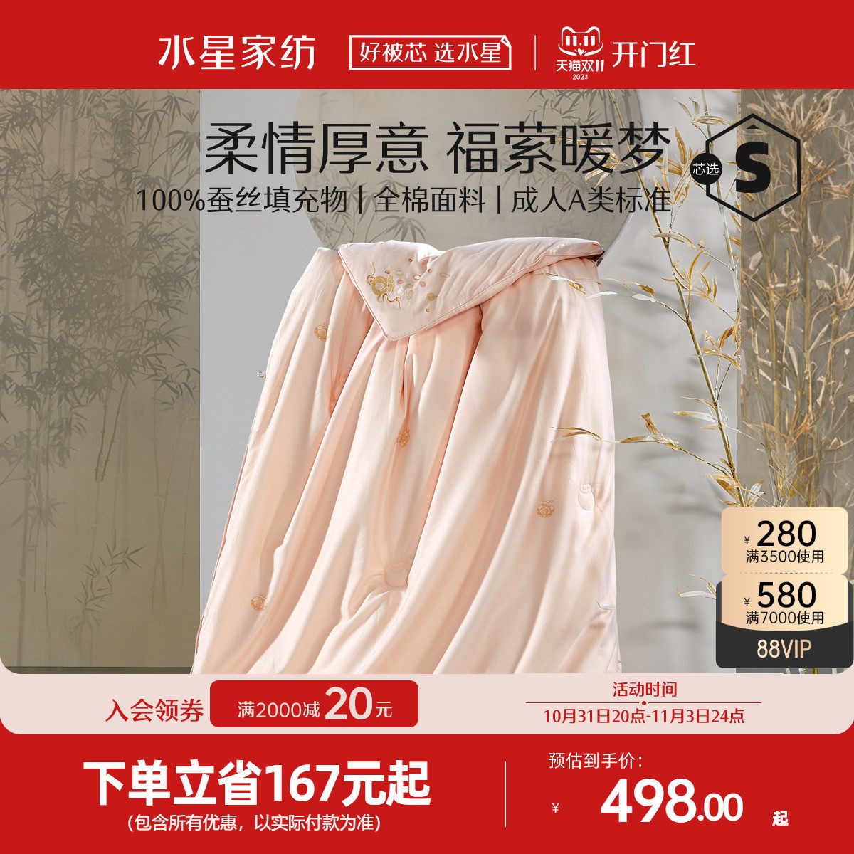 水星家纺蚕丝被春秋被子二合一子母被四季通用空调被单人双人被芯
