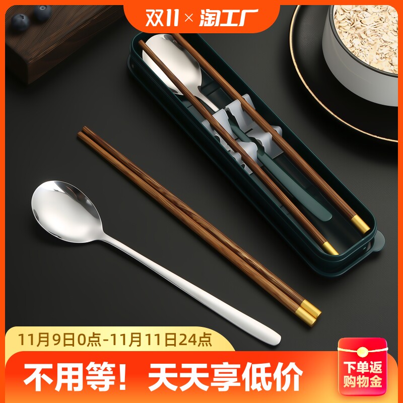 北欧风便携餐具食品级不锈钢筷子勺子套装学生三件套收纳盒一人装