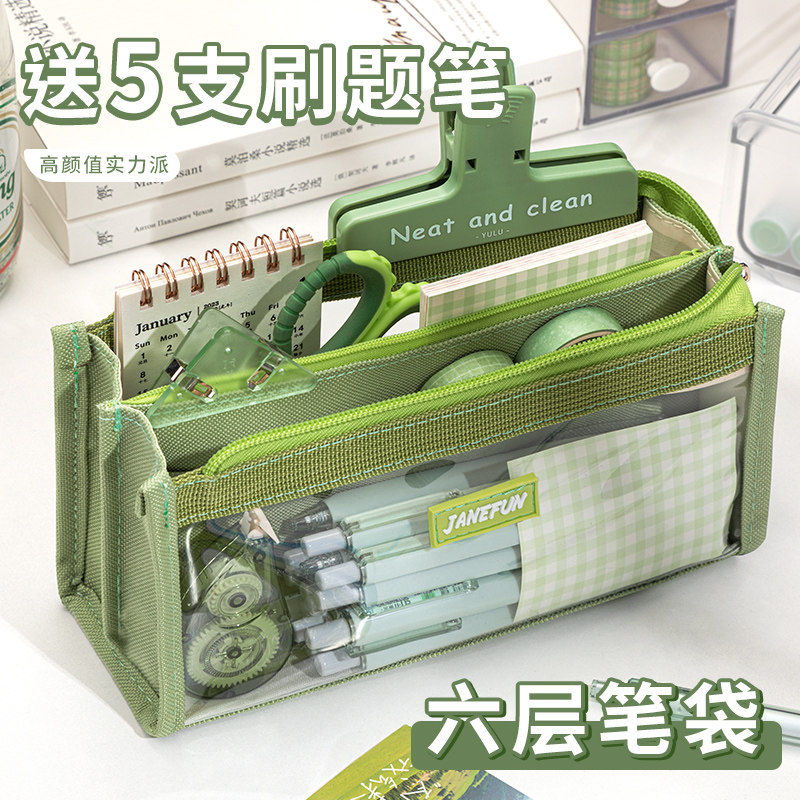 晨光大容量透明网纱笔袋文具袋