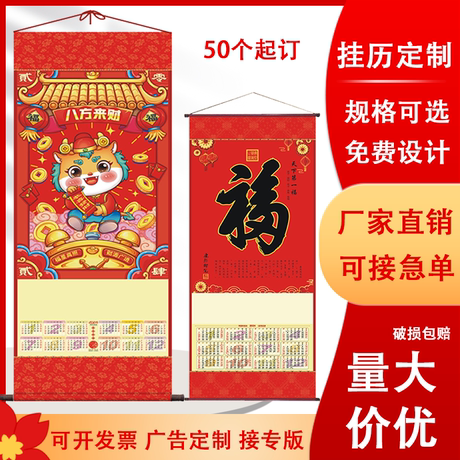 2024年龙年挂历福字单张无纺布挂轴定做广告LOGO挂历卷轴定制专版新年促