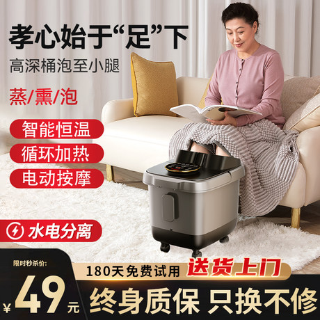 圆鲸折叠泡脚桶按摩加热家用自动小米白泡脚洗脚盆恒温足浴神器